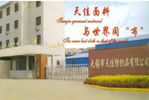 無錫市天佳紡織品有限公司是一家專業生產和研制時尚休閑面料的工貿公司、公司總部設在國內最大的服裝面料市場—廣州中大布市,工廠生產基地座落在風景秀麗的太湖之濱、全國棉布印染之城的江蘇無錫。公司經過近十年的發展,現已形成產銷一體化的網絡體系,工廠擁有先進的工藝裝備和齊全的產品質量監控手段,生產經驗豐富,工藝精湛合理,產品質量過硬。一批一流的技術及管理人員的加盟,使公司從織造染整及后整理不斷創新和發展,每年向市場推出十幾種新品面料,成為國內外知名服裝品牌的指定面料。